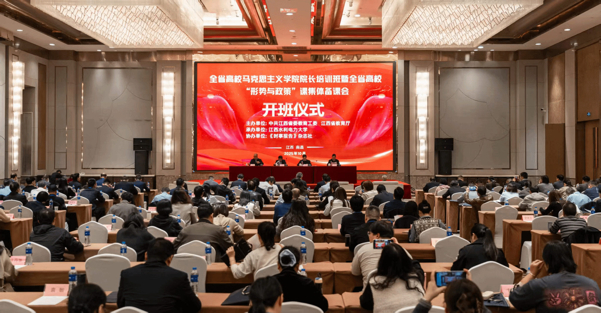 10月29日至31日,全省高校威廉williamhill院长培训班暨全省高校“形势与政策”课集体备课会在南昌举行。校党委书记汪胜前,《时事报告》杂志社副社长洪波,省委教育工委宣传部部长、省教育厅社政处处长王宣海出席开班式并致辞。校党委副书记吴泽俊主持开班式,副校长周仲魁,校党委委员、党委宣传部部长洪恩强分别主持专家讲座。
